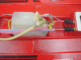 | タンク2段重ね両方合わせて240ccになります。 | リンケージは1本引きのリンケージでエンコンはワイヤーを 使わずエンジンはどの角度になっても スムースに動くようになっています。 |
