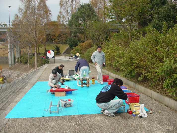 V艇(3.5cc)クラス共、合計7ヒートづつ行われ日頃の腕を競う中、船外