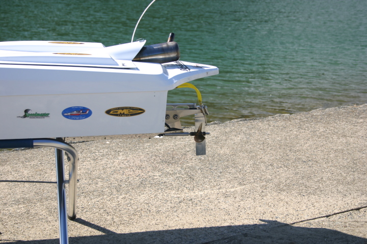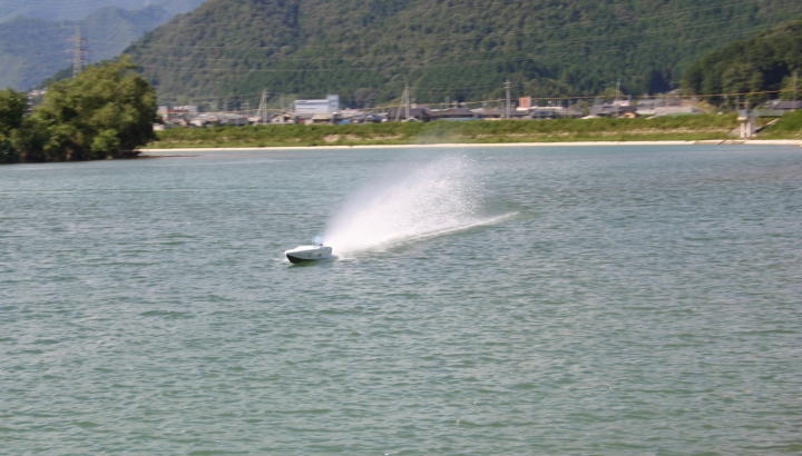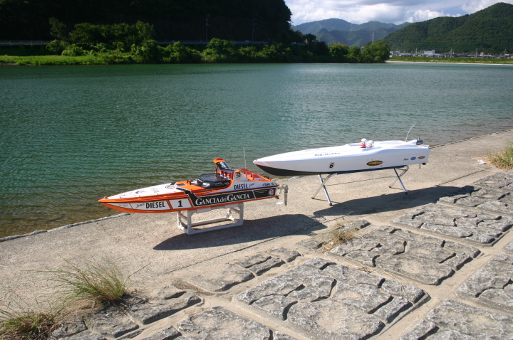 全備重量 15~16Kgガソリンの長距離艇ではスキー艇が多い中、今回当店ではV艇で挑戦してみようと思いエンジンの馬力のある