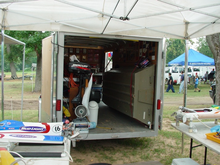 | Shopのサポート隊 | よく見て下さい。 右に回収ボート 左上にはマーキューリー 奥には電動工具 移動する工場です。 |