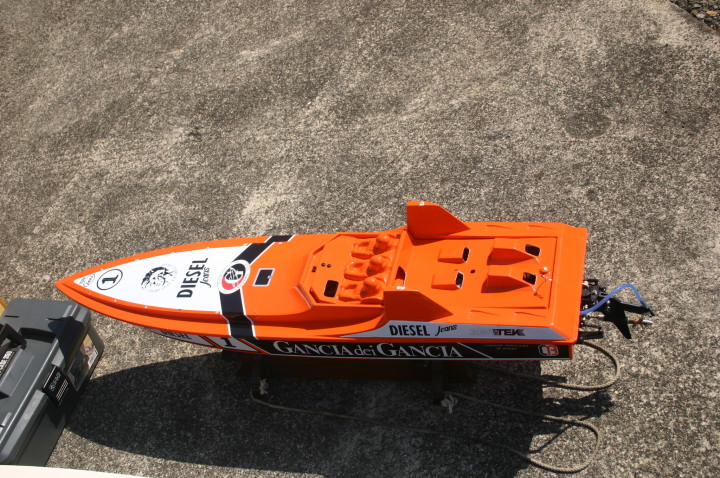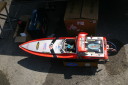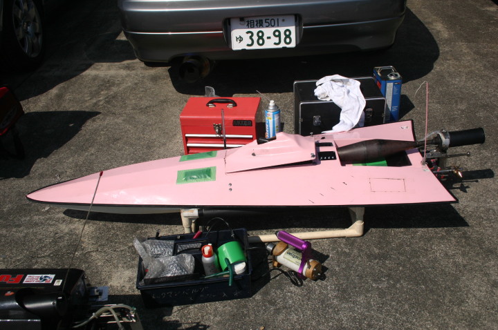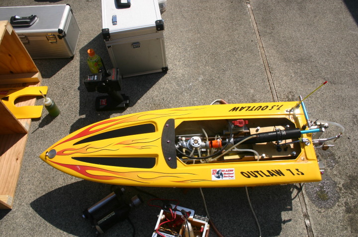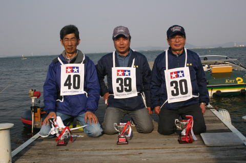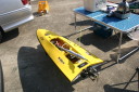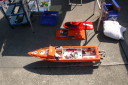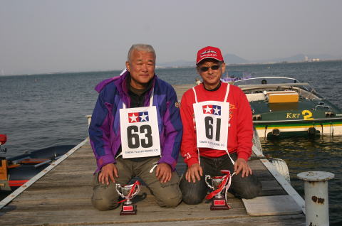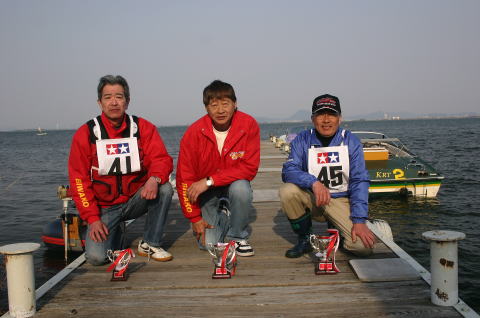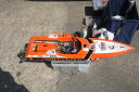 | R級(21V)長距離レースの参加は初めてです。急遽ヒート艇で参加。オープンデッキと水抜きを付けずに参加したのは大失敗でした。次回は完走を目指します。 | 今回のレースに参加する為に急遽作りましたのでまだ練習不足です。カラーリングも間に合いませんでした。 | R級(21V)エンジンはOS18CVR-MXこのR級は今回初めて採用されたクラスでエンジンは15-18-21船体はV艇のみで自作艇又は市販艇どちらもOKでギアダウン仕様も可 | R級(21V)エンジンはOS21RXM今回の優勝艇。スクリューユニットはABC製の改良型。さすがベテラン2回共完走しました。 | R級(21V)エンジンはOS18CVR-MX今回3位に入賞しました。 |