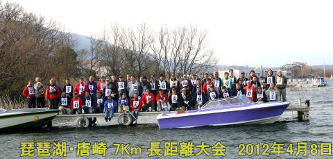 2012年4月8日大津市の唐崎マリーナにおいて記念すべき第1回KRT(唐崎レーシングチーム)主催による琵琶湖・唐崎 7Km長距離大会が行われた。KRTの水原会長はじめメンバーの皆さんは練習もそこそこに既に何日も前から準備に大忙しでした。若い?皆様のお力で今後も第2回第3回と続いていくことを願っております。大会の申込者も55名延べ67艇あり第1回目としては順調な滑り出しでした。後援、ご協賛いただいた皆様にはこのページにて御礼申し上げますと共に今後もご指導ご鞭撻のほどよろしく、お願い申し上げます。今回レースに参加していただいた方は勿論、ラジコンボートに興味のある方このページにて当日を思い出してお楽しみ下さい。