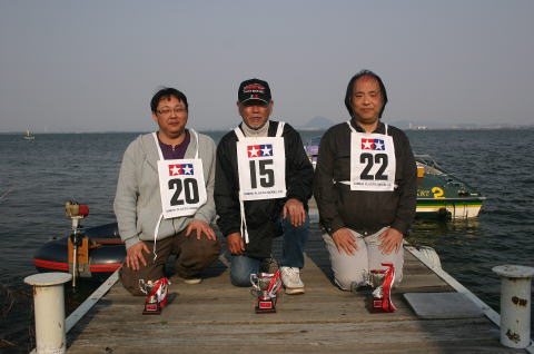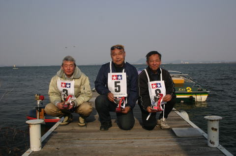 レース当日は午前中は波も荒くR級は2艇しか完走しませんでした。他のクラスも同じような状況でしたが午後からは波も落ち着きR級も4艇帰ってきました。ここからは優勝ならびに入賞された方のご紹介をさせていただきます。間違っている箇所がありましたら修正させていただきます。R級は今回初めて採用されたクラスです。エンジンは15-18-21までで船体は市販艇、自作艇もOKギアダウンもOK初心者からベテランまで楽しめるクラスです。5月13日のTRRC主催の唐崎マリーナレースでも取り入れられると聞いておりますが詳しいことや日程などは主催者側にお確かめ下さい。