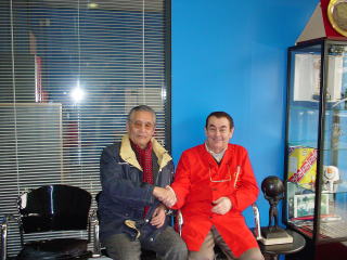 | Novarossi Factoryの看板 | Rossi社からNovarossiを作った時からの友人 元々は時計職人でその後エンジンのチューニングをし その後Fill-Rossi社を興す。Novarossi Cesare社長となり現在にいたる。 |
