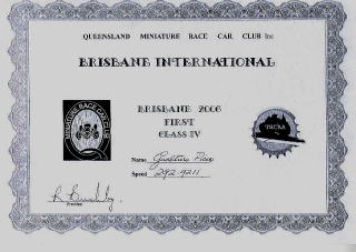 Speed Car 世界大会10ccクラスで292.9211Km/h でPicco Gualterangeloが優勝した表彰状(2006年) |