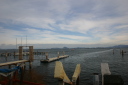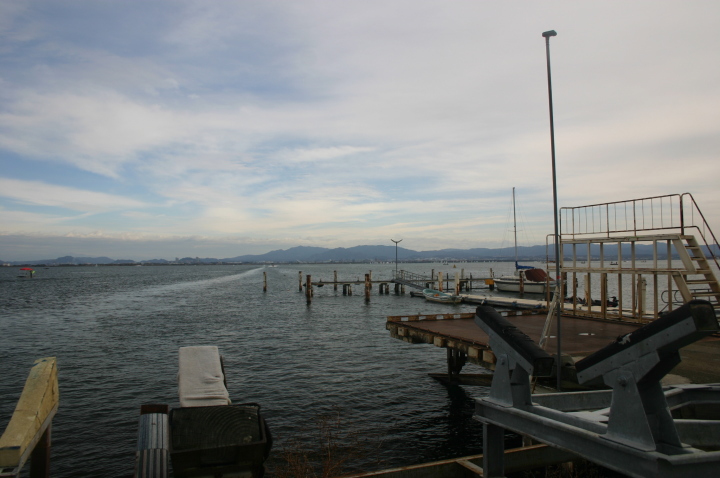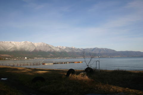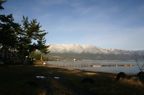 | 12月2日朝の琵琶湖の風景。比良山に雪が積もっている。 |