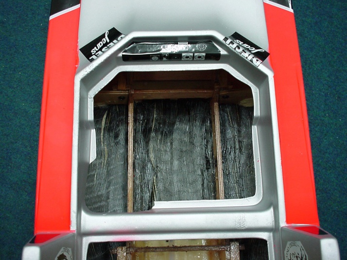 | 換気 | この船には空気の出入り口を15ヶ所付けてあります。不十分ならベンチレーターを付ける必要があります。3.5ccのエンジンが1分間に30,000回転廻ったら100リッターの空気が必要ですので吸入口を沢山作って下さい。 |