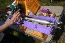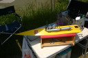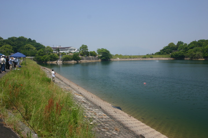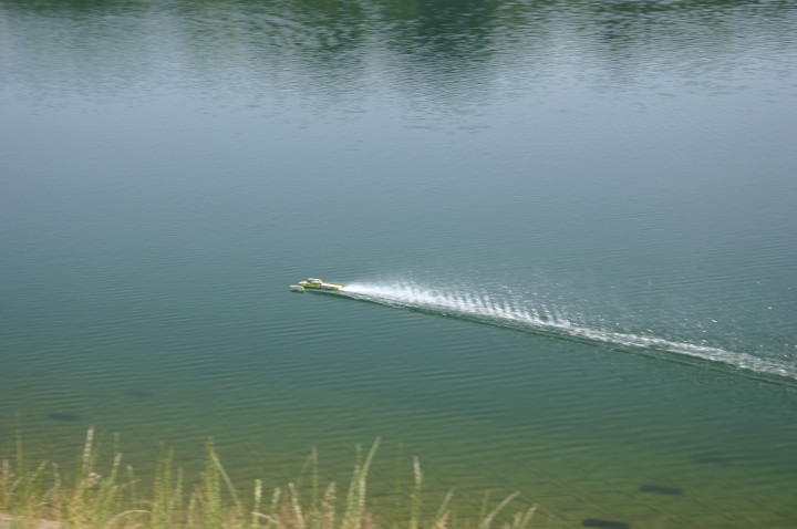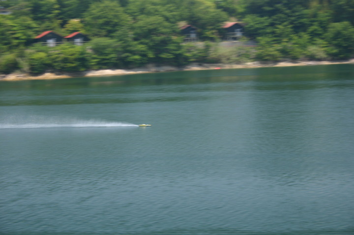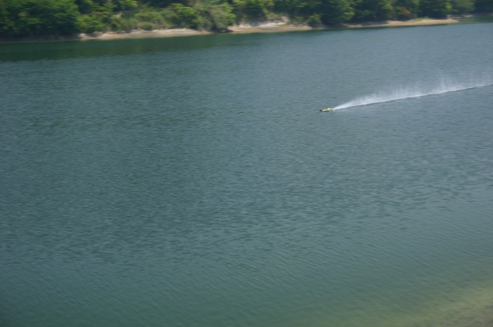 四国良い所、一度はおいで!うどんはうまいし、おなごは綺麗でよとまたもや四国八十八ヶ所も回らずにタイトラのレースを見に行ってきました。タイムトライアルレースとはたった3秒に男のロマンを賭ける200km/hにチャレンジするレースが四国で行われました。レース場は香川県観音寺大野原 ICより10分位の所にあり萩の丘公園キャンプ場内の大谷池にレース場があります。幅が150m、長さ1500mで水面は画像の通りです。堤の下にあり風の影響がほとんどなくタイトラにとってベストの場所です。キャンプ場もあり宿泊しながらレースに参加出来るところです。レース当日は晴天で微風とコンデションも良く当社のタイトラ用に開発したジュラペラのテストも上々とのことで今年の秋のタイトラの記録会には200km/hを越すことが出来るかも・・・と期待が持てます。3秒に男のロマンを賭ける多数の挑戦者をお待ちしております。