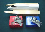 VS1のサイズ 全長-----------71cm 全幅-----------28cm 全高-----------13cm 重量(船体のみ)--950g Bodyは木製でカウルはARF 木部はクリア塗布仕上げ |