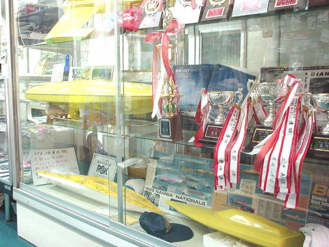 | 各社の船体とトロフィーが展示されております。 |