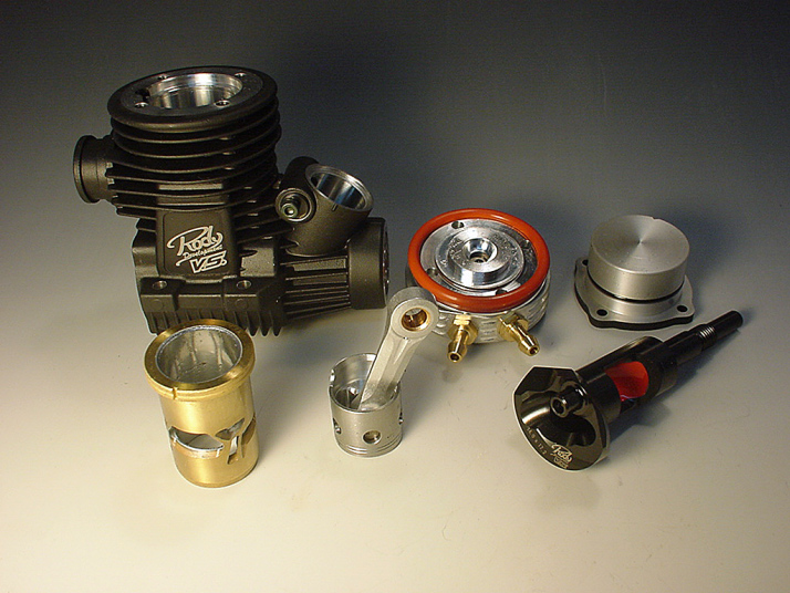 3.5cc Bore--------------------16.27mm Stroke------------------16.80mm Crankshaft-----------------14mm PC------------------------7ports Mr.RodyによるO/B Crankshaft-P/C-軽量フライホイルを OSエンジンと共に開発されました。Nitoro 25%の燃料で 素晴らしい パワフルなエンジンになりました。 Mr.Rodyにより7ポートラインにMFSの排気システムを採用 しました。ターボヘッド |